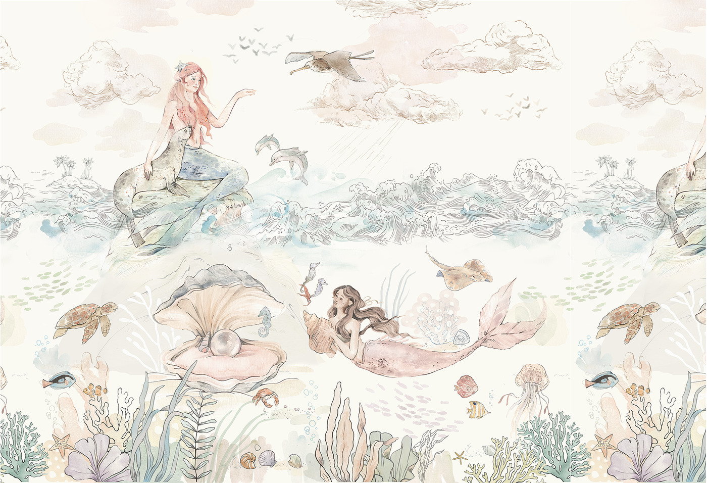 LAGUNA SYREN – Blue – Tapeta W Syreny I Morskie Zwierzęta